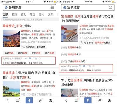 隨著(zhù)暑期的到來(lái),有用戶(hù)反映在使用百度APP搜索“暑期旅游”、“空調維修”等關(guān)鍵詞時(shí),在搜索結果中的廣告內容下方,除了原有的廣告標識外,新增加了一個(gè)藍色的盾牌型“保”字標識。用戶(hù)點(diǎn)擊該標識后,頁(yè)面內會(huì )彈出“網(wǎng)民權益保障計劃”的入口,繼續點(diǎn)擊可以進(jìn)入網(wǎng)民權益保障計劃申保頁(yè)面。